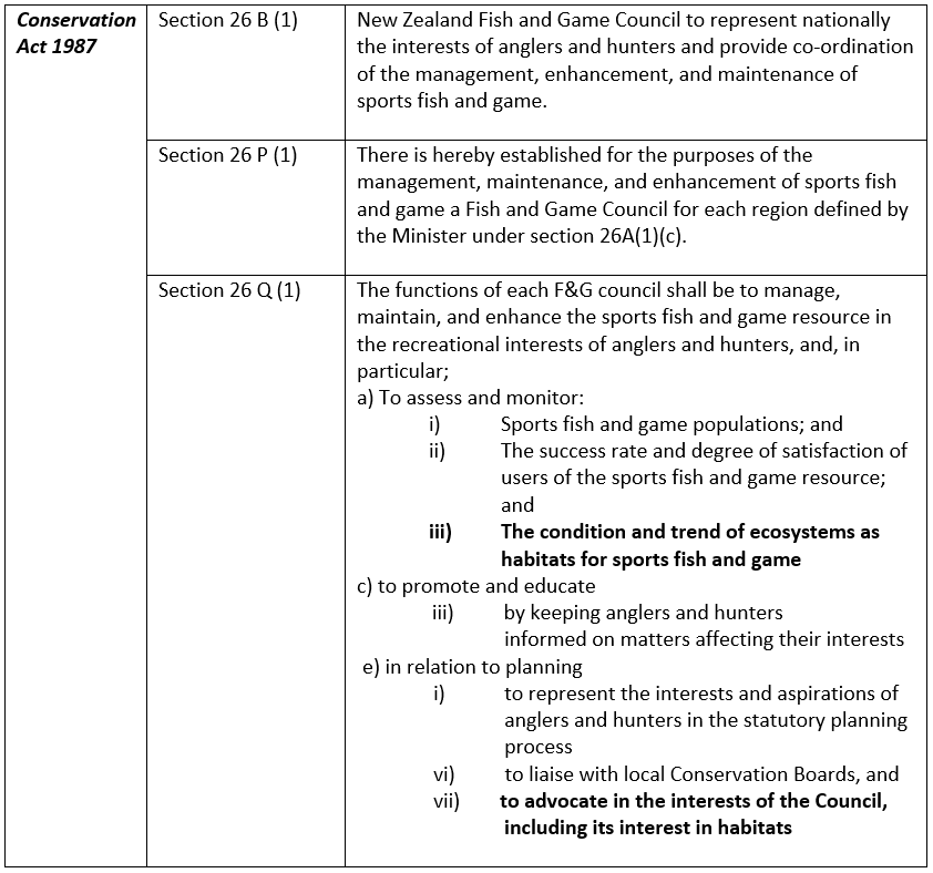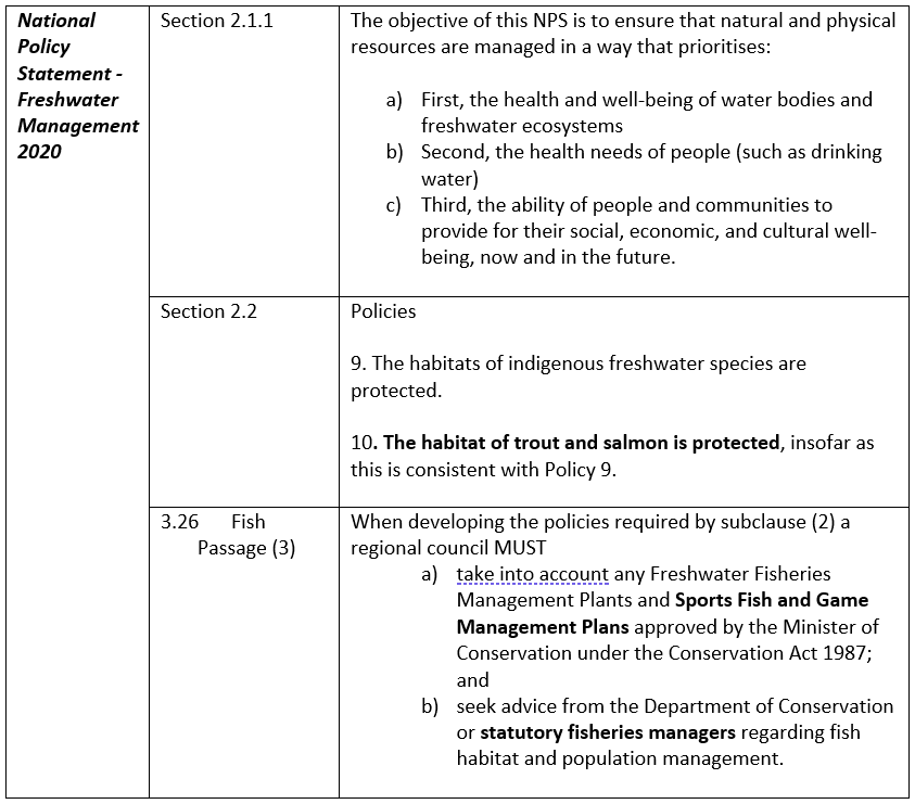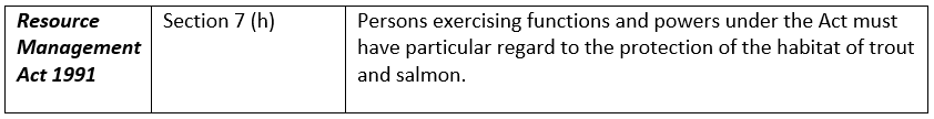 Appendix 3: Current legislation under which Fish and Game advocate for the habitat of trout and salmon