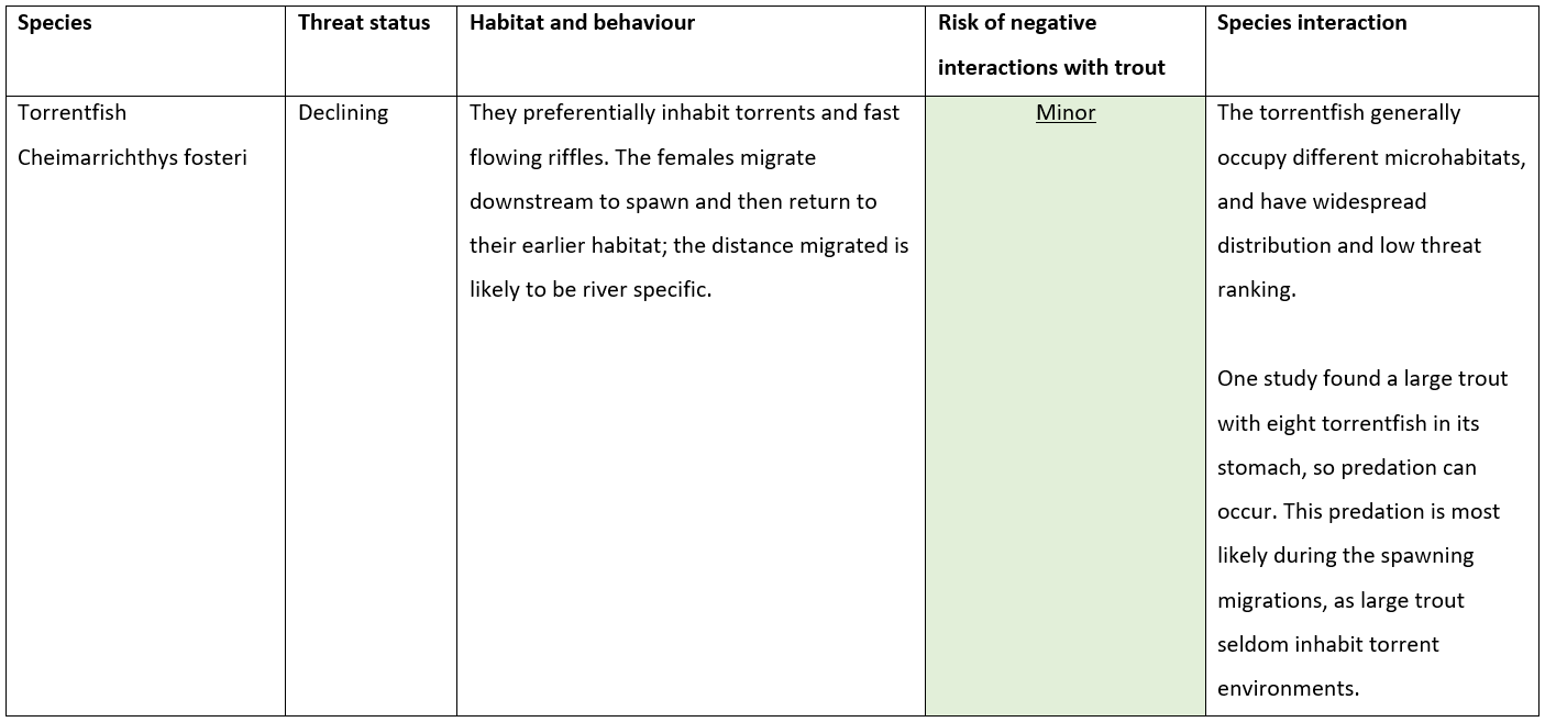 Using the RAM, it is considered the risk of negative interactions with trout to be harmful to torrentfish populations is minor.